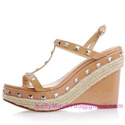 Product Name: Valentino Rockstud Shoes 100mm Studded Wedge Sandal Nude