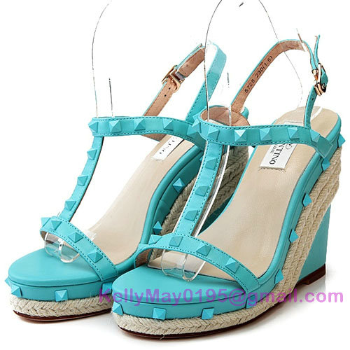 Your Position: Home » Valentino » Valentino Wedges » Valentino Rockstud Shoes 100mm Studded Wedge Sandal Skyblue