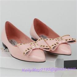 Product Name: Valentino Rockstud Shoes Bowknot Patent Leather Flat Pink