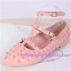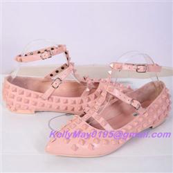 Product Name: Valentino Rockstud Shoes Noir Rockstud Cage Flat Pink Leather