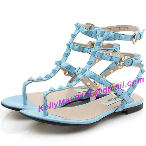 Product Name: Valentino Rockstud Shoes Rivet Buckle Sandal Flat Blue