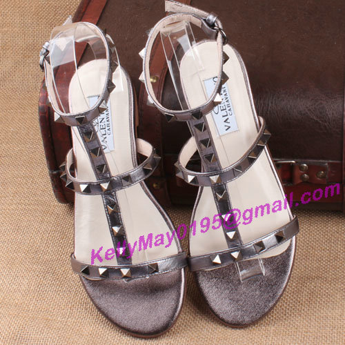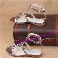 Product Name: Valentino Rockstud Shoes Rivet Buckle Sandal Flat Gun Color