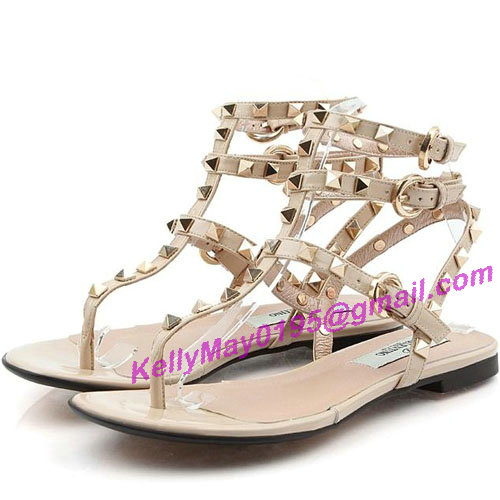 Product Name: Valentino Rockstud Shoes Rivet Buckle Sandal Flat Nude