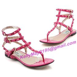 Product Name: Valentino Rockstud Shoes Rivet Buckle Sandal Flat Peach