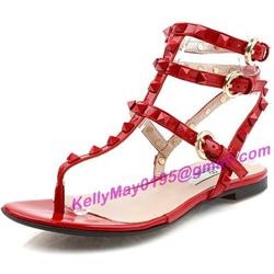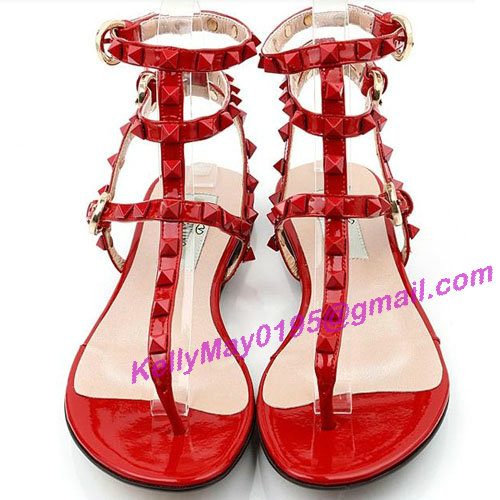 Product Name: Valentino Rockstud Shoes Rivet Buckle Sandal Flat Red