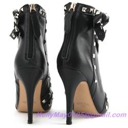 Product Name: Valentino Rockstud Shoes Rivet Leather Booties Black