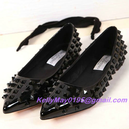 Product Name: Valentino Rockstud Shoes Rivet Pointed Toe Flat Black