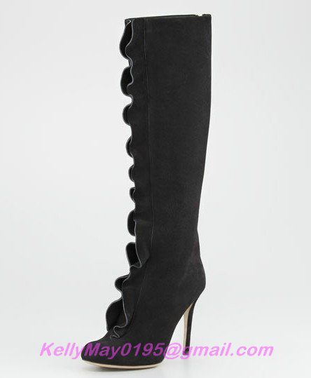 Your Position: Home » Valentino » Valentino Boots » Valentino Rockstud Shoes Ruffle Front Suede Knee Boots Black