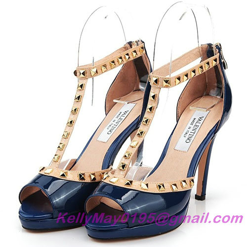 Product Name: Valentino Rockstud Shoes Studs Patent Leather Sandal Navy