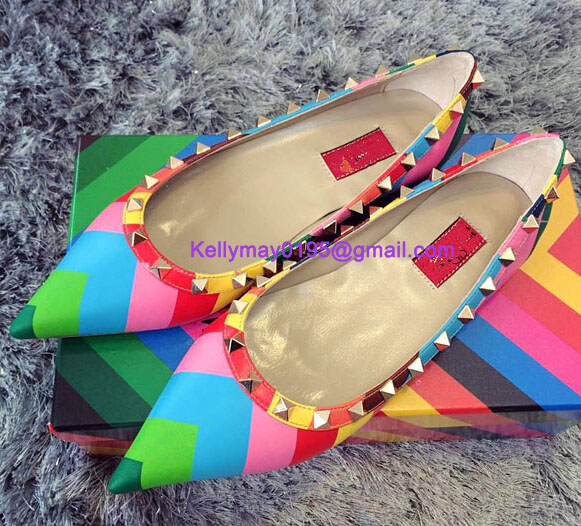 Product Name: Valentino Rockstud Shoes Wide Rainbow Stripe Flats Shoes Green Blue Strapless Outlet