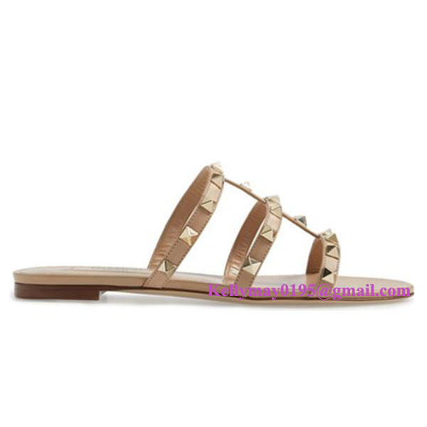 Product Name: Valentino Rockstud Slide Sandals Flats Camel