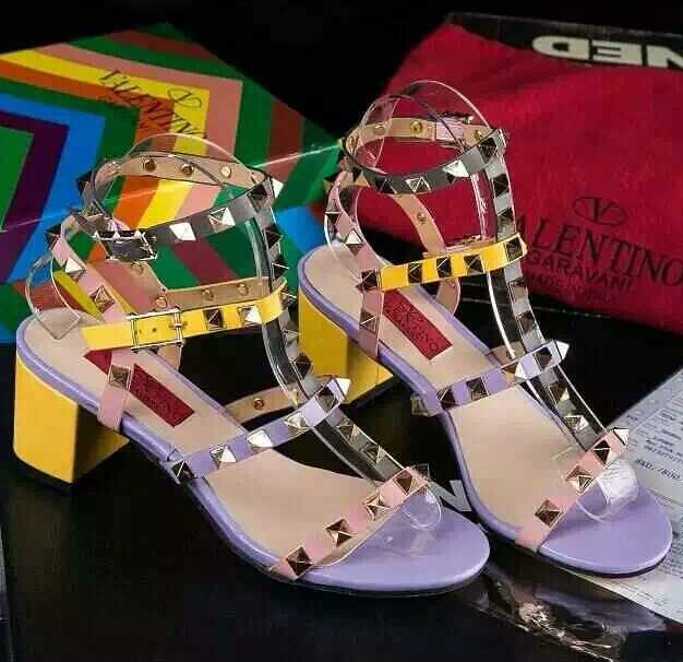 Product Name: Valentino purple multicolor yellow thick heels 60mm sandals shoes Outlet